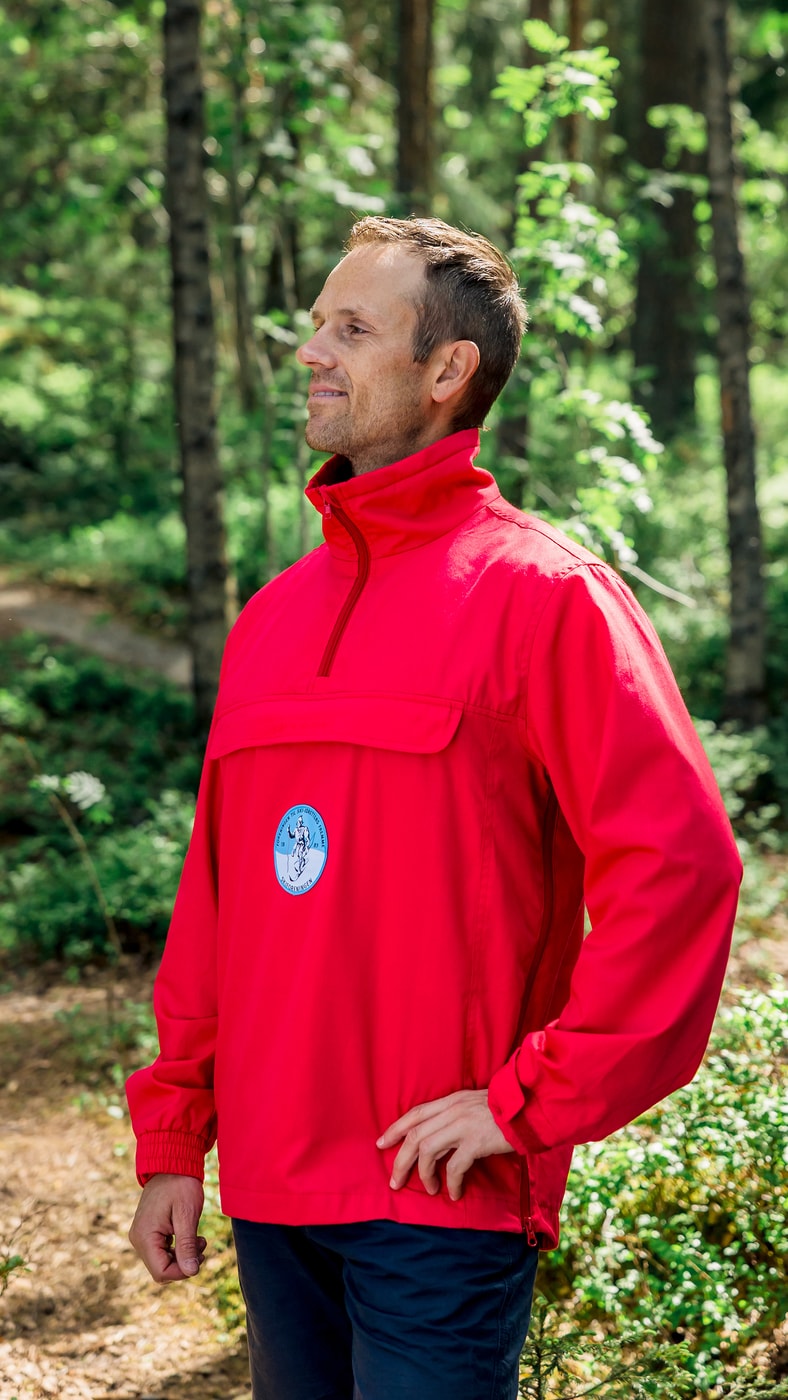 Anorakken passer til de fleste sporty anledninger, holder unisex-størrelser og kommer i fargen rød. Anorakken er lett og behagelig. En tidløs klassiker, som kan brukes hele året.