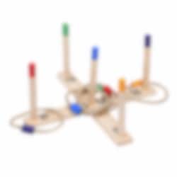 Spillet er lett å sette opp og spille: Kast ringene mot pinnene og samle poeng ut fra hvilken pinne de lander på. Med 5 medfølgende ringer og flere poenggivende pinner, blir det både presisjon og spenning i hvert kast!